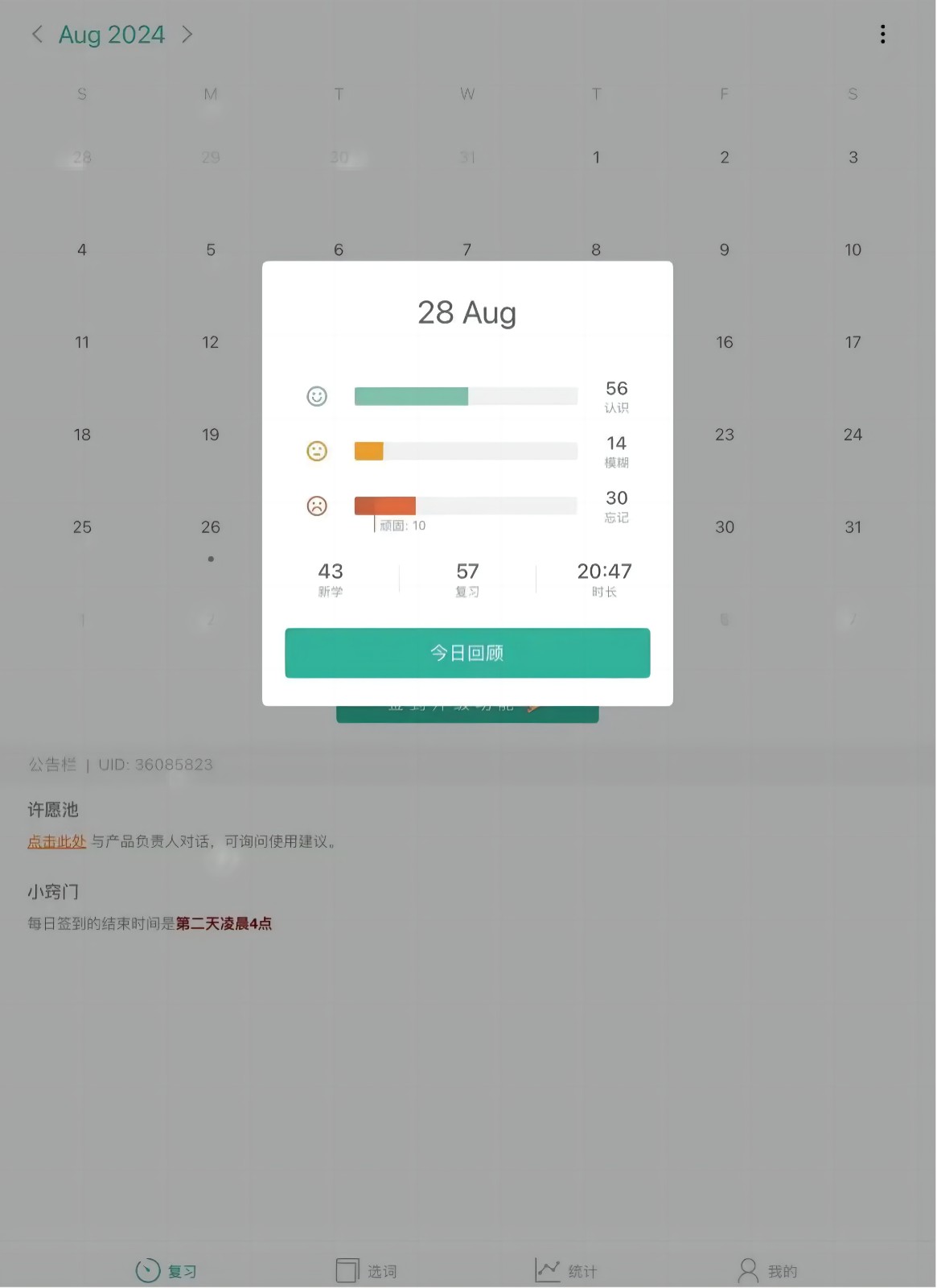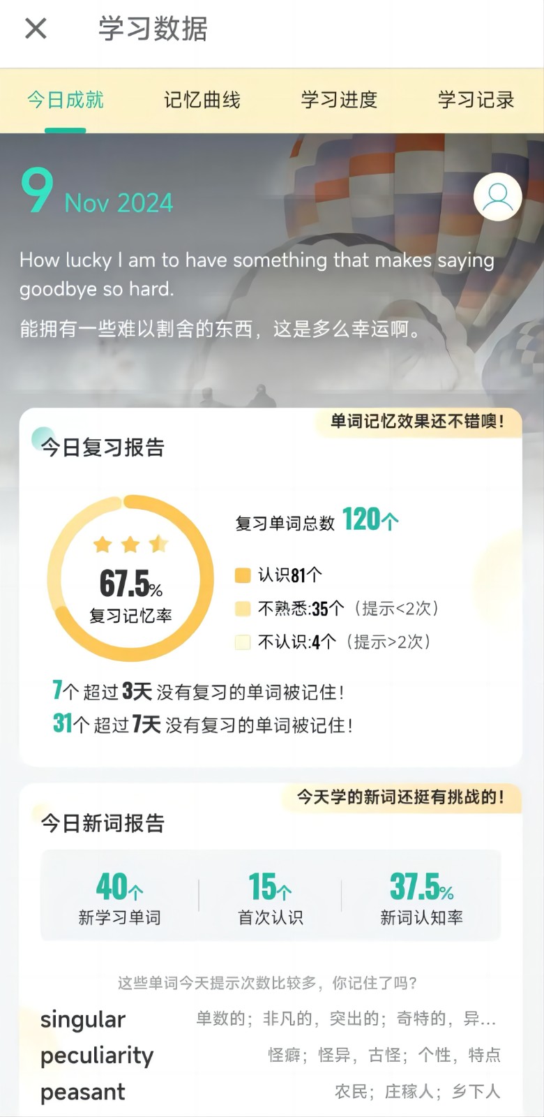 或许你担心奖品诱人竞争激烈,自己难以在打卡单词数量上取得优势。不过如果你有持之以恒的决心,能够在活动期间坚持每日打卡,并且每天背诵至少50个单词,就有机会冲击全勤奖,获得国誉资料册!
